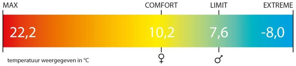 | Temperaturbewertung | Komfort +10.2°c (women’s Temp.) – Komfortbegrenzung +7.6°c (men’s Temp.) – extrem begrenzt -8°c |