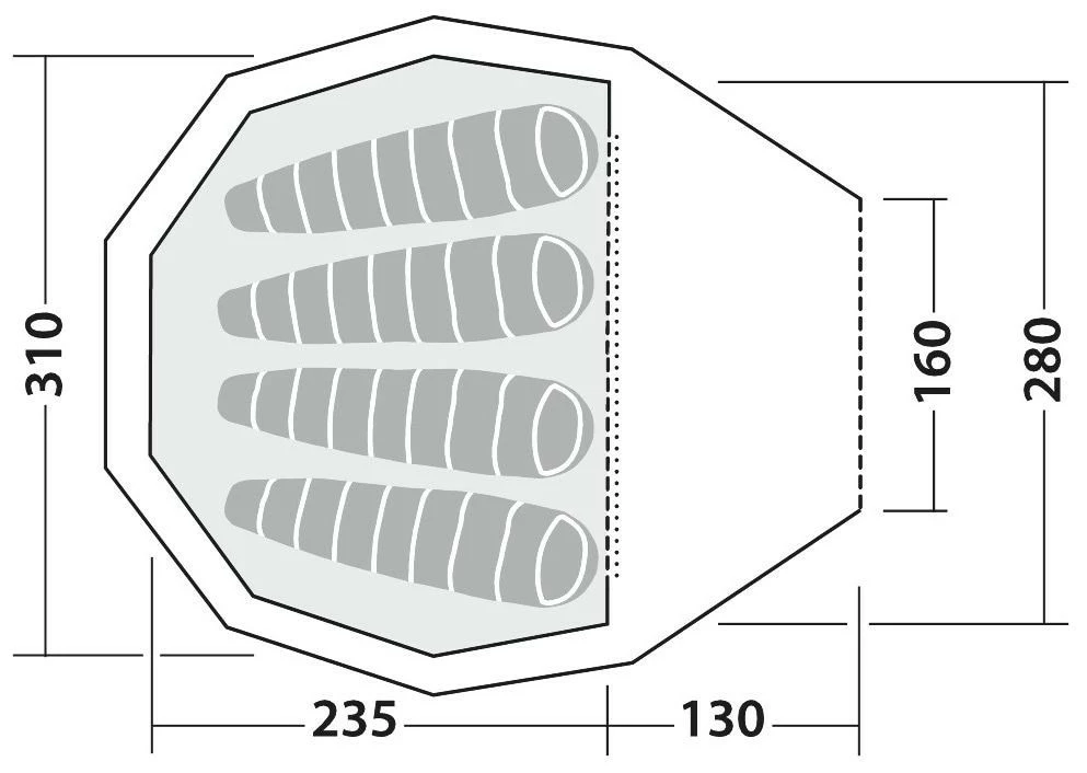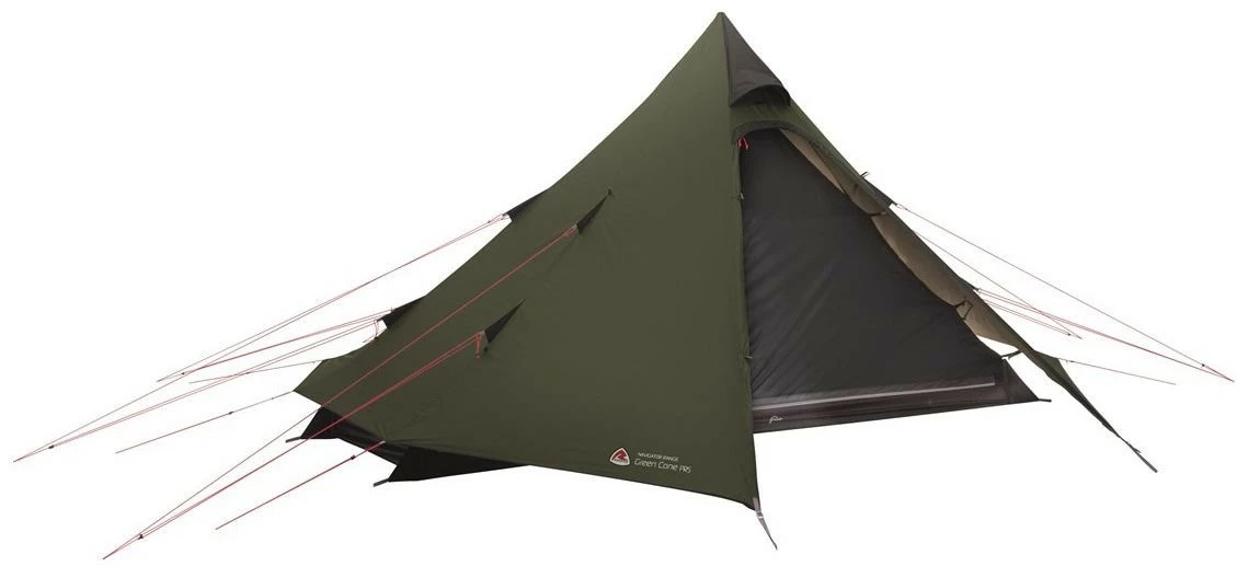 Der vielseitige Polyester Green Cone PRS Tipi hat eine große Kopffreiheit, eine große Veranda und einen Innenraum für vier Personen. Es verfügt über eine versetzte Mittelstange für einfachen Zugang. Dadurch wird das Äußere vom Boden abgehoben, um einen Spalt zu schaffen, um den Luftstrom zu unterstützen. Um Gewicht zu sparen, entfernen Sie das Innere und stellen Sie die teleskopische Mittelstange so ein, dass das Äußere nahe am Boden des perfekten Bivvy-Zeltes sitzt. Kleine Eckstangen sind in das dunkle Innere eingenäht, um eine Wand zu schaffen, die zusätzlichen nutzbaren Raum bietet.