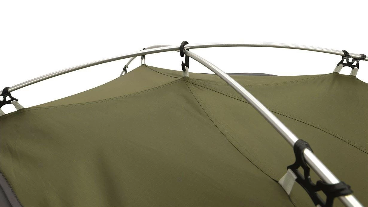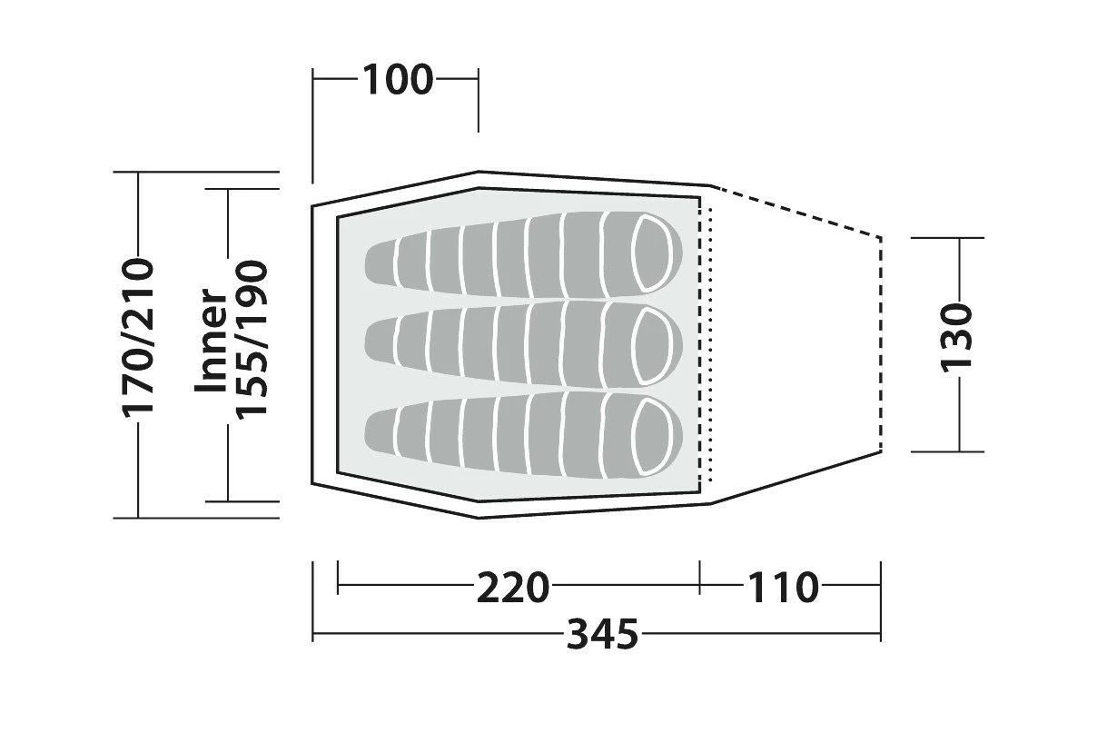 Das halbgeodätische Kuppelzelt Shikra 3 überzeugt mit seiner hervorragenden Stabilität bei schlechtem Wetter. Höhe und Breite im Zelt sind ideal für drei Camper. Außerdem ist es möglich, sich in den Eingangsbereich zu setzen und von dort aus das Essen im Vorraum zuzubereiten. Die Außentür lässt sich flexibel öffnen und bietet einen mühelosen, windgeschützten Zugang zum Zelt. Zur Unterstützung der von innen anpassbaren oberen Lüftungsöffnungen kann die Tür geöffnet werden. Die Stangenkanäle an den kurzen Enden erleichtern den Überblick über das Leichtmetall-Gestänge und beschleunigen das Aufstellen.