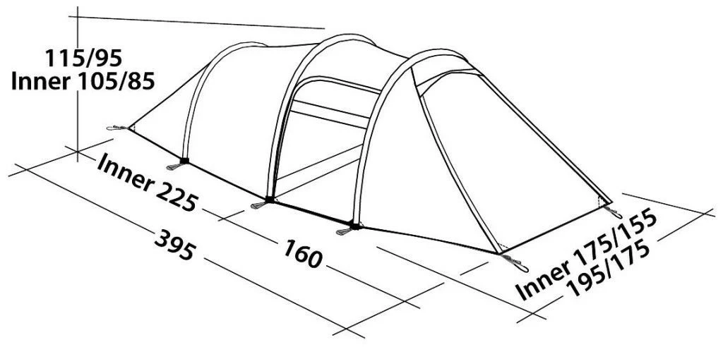 Das 3-Personen-Tunnelzelt Versa 3 verdankt seine Stabilität unterschiedlichen Merkmalen. Dazu gehören das neue Ripstop-Polyester-Außenmaterial, flache Stangenkanäle sowie das Yunan-Leichtmetallgestänge. Durch eine Seitentür und den Vordereingang betritt man den erweiterten Vorraum, der sich ideal als Stauraum eignet oder auch Platz zum Entspannen bei schlechtem Wetter bietet. Zwei Reißverschlüsse können geöffnet werden, um den Vordereingang aufzustellen. Die gesamte Wand des Vorraums kann nach hinten geklappt werden. Auch die Rückwand kann nach hinten geklappt werden, um das Innenzelt ordentlich zu lüften