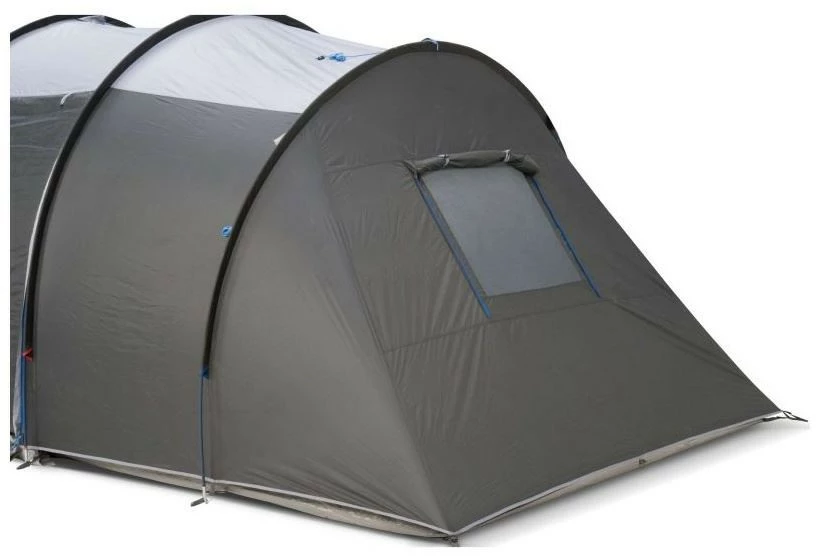 Das Zelt besteht aus einer Schlafkabine und einem Wohnzimmer. Das Wohnzimmer hat einen Seiteneingang mit einer Gittertür. Zusätzlich verfügt das Zelt über abschließbare Fenster und ein permanentes Belüftungssystem für einen kühlen Schlaf. Eine PE-Wannenbodenplane wurde im Frontend platziert. Das Zelt bleibt mittels Fiberglas-Bogenstangen in Kombination mit den mitgelieferten Stiften und Guylines stehen.