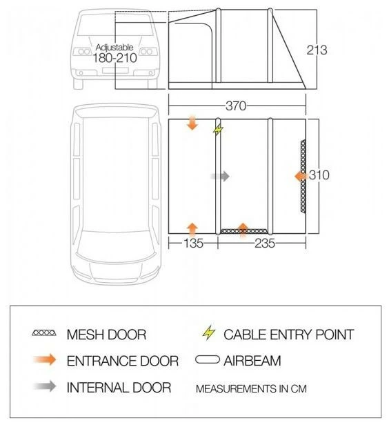 De Vango Kela V Air Low is een SUV kampeerbus tent (180max-210max. De Kela III opblaasbare campertent is een zelfstandig staande constructie gemaakt van het hoogwaardige 420 dubbel ripstop Sentinel Pro materiaal. Het praktisch onverwoestbare doek, in combinatie met steunbalken en stormbanden, zorgen ervoor dat de Kela III één van de beste drive-away campertenten is die er op het moment te krijgen is. Met zijdeuren aan beide kanten van het verbindingstuk. De ideale plek om spullen op te bergen en houdt zowel de tent als uw camper schoon en droog. Het gepantenteerde Tension Band System (TBS® II) houdt de tent overeind in stormachtig weer en is makkelijk op te bergen in de opbergvakken wanneer de lucht weer is opgeklaard. Het prachtige ontwerp maakt van deze drive-away tent een stijlvolle aanvulling op iedere camper.
