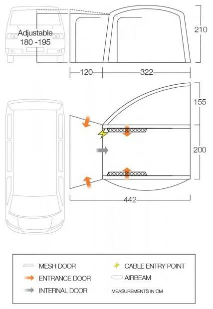- De Vango Magra Air VW is een SUV kampeerbus (180max-210max).